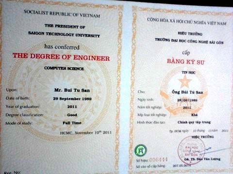 là ảnh chụp bằng tốt nghiệp đại học của trường Đại học Công nghệ Sài Gòn trong