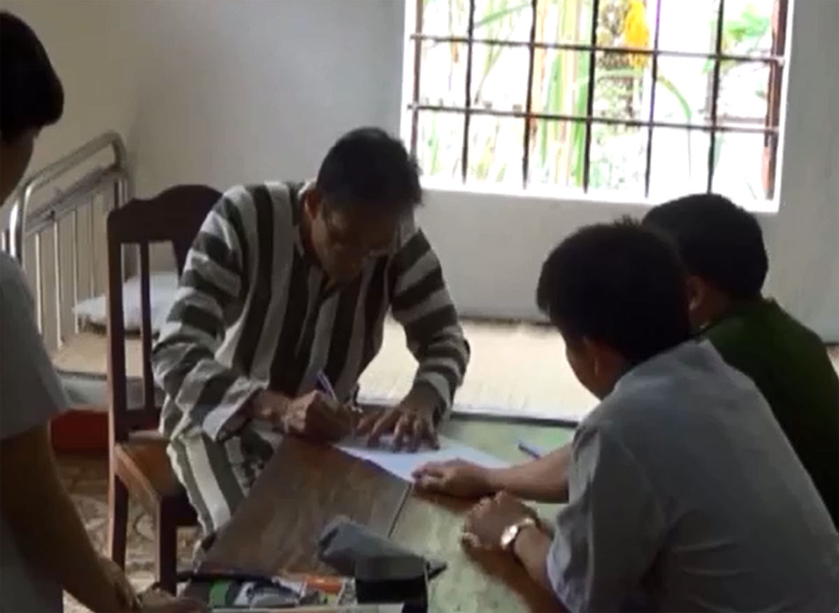 Người được coi là Điếu Cày - Nguyễn Văn Hải đang ngồi ký