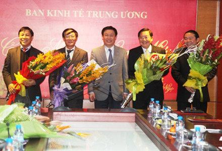 ban Kinh tế Trung ương Vương Đình Huệ chúc mừng các Phó Trưởng ban. Ảnh và