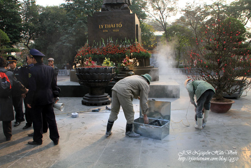 trước mặt vua Lý nhằm chiếm chỗ người tưởng niệm với những bó hương, những cành