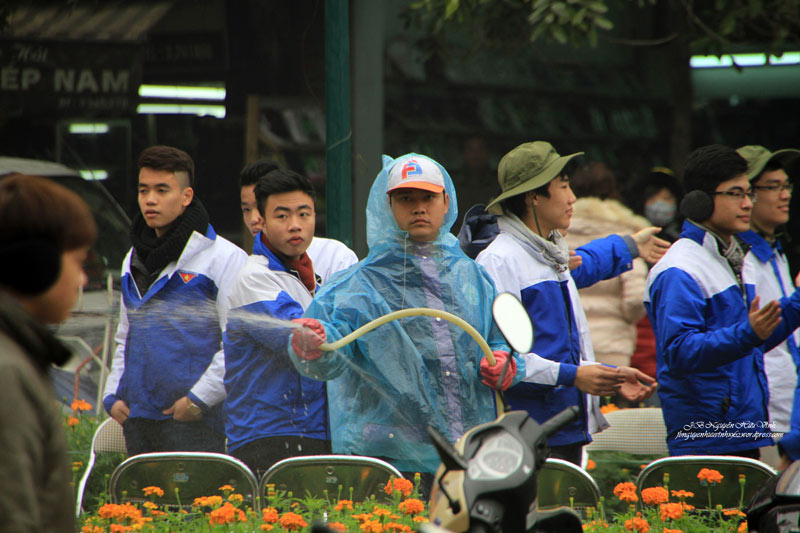 ngoại quốc vốn không hiểu tập quá Việt Nam. Họ cho người mặc áo mưa đi tưới hoa