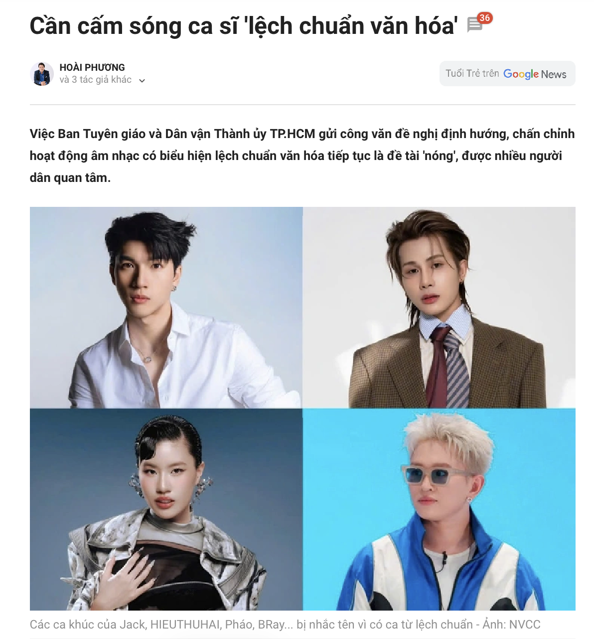 Thật mỉa mai khi thấy Tuổi Trẻ hăng hái kêu gọi kiểm duyệt các ca sĩ “lệch