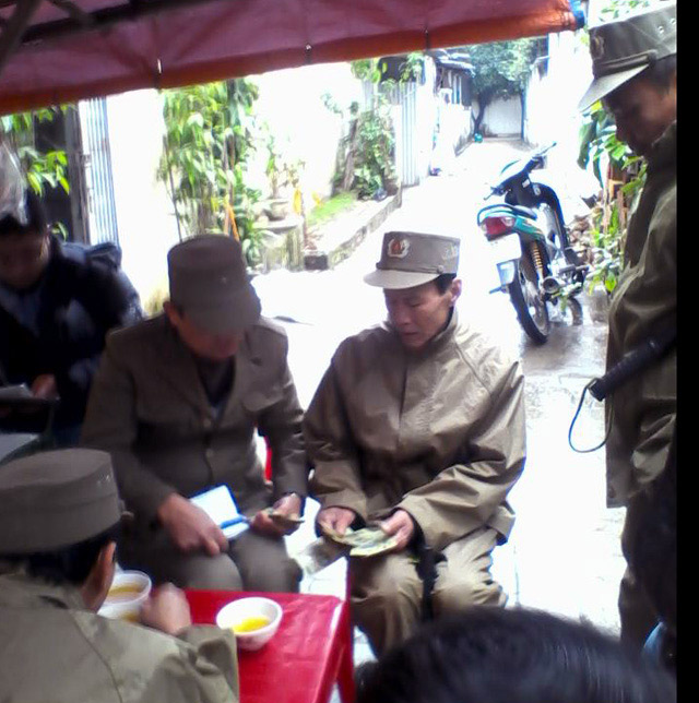 (Ảnh: Công an, dân phòng chia tiền sau khi trấn áp người đến dự Tòa công