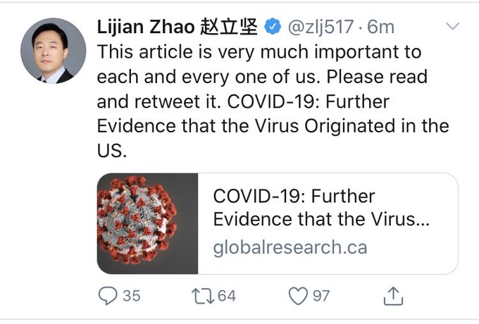 tấn công về mặt ngoại giao, vu cáo quân dội Mỹ đem virus vào Trung Hoa khiến Tổng