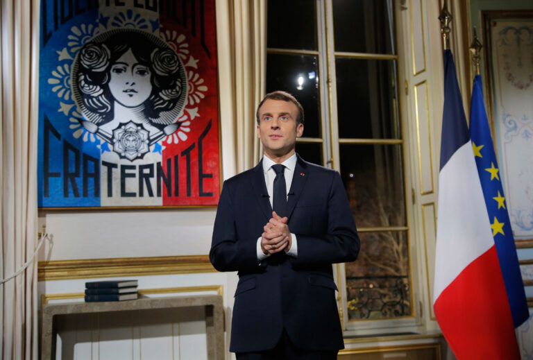 recording of his New Year's speech at the Elysee Palace, in Paris, Monday, Dec.
