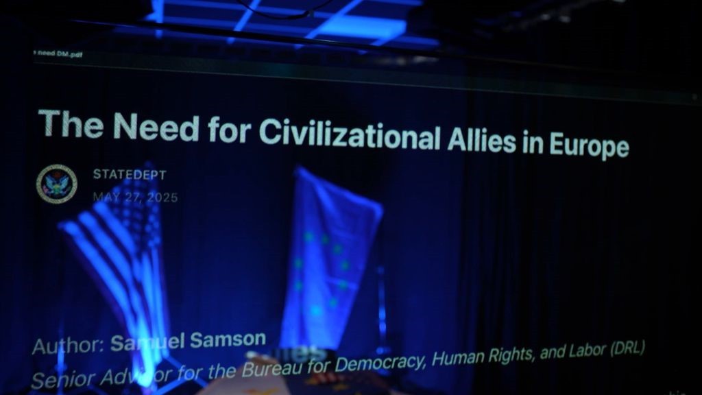 Tháng 5 năm nay, một tài liệu về chính sách cũng đã được đăng trên trang web của Bộ Ngoại giao Hoa Kỳ. Trong đó, chính phủ Hoa Kỳ đã gióng lên hồi chuông cảnh báo về tình hình ở châu Âu. Theo tài liệu về chính sách này, châu Âu đã “trở thành một ổ kiểm duyệt kỹ thuật số, di dân hàng loạt và hạn chế tự do tôn giáo”. Tài liệu mô tả những nỗ lực hạn chế sự tham gia vào các cuộc bầu cử, ví dụ như bằng cách dán nhãn cho đảng Alternative für Deutschland (AfD) của Đức là “cực đoan”.