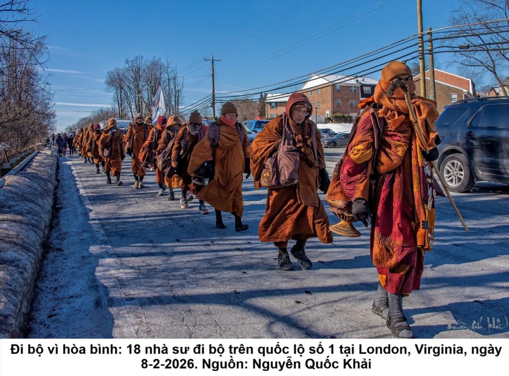 Các nhà sư Phật giáo đã từ North Carolina bước vào Virginia vào ngày 28 tháng 1 năm 2026. Họ vượt qua biên giới vào Brunswick County trong ngày thứ 95 của cuộc hành trình, đến khu vực Gasburg trước khi tiếp tục hành trình về phía thủ đô Richmond. Ngày 6-2-2026, các nhà sư đã dừng chân giữa trưa tại Hội thánh Unitarian Universalist ở Fredericksburg, Virginia. Sáng hôm sau, đoàn lữ hành đã đến Quantico và nghỉ trưa tại khách sạn Ramada và chiều tối đã lội bộ đến Woodbridge, rồi qua đêm tại khách sạn Hilton.