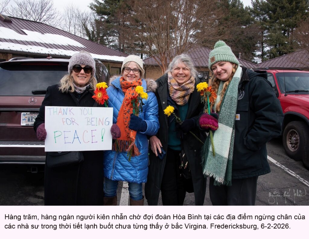 Nhiều người bất chấp cái lạnh thấu xương, xếp hàng dọc các con phố để chào đón phái đoàn các nhà sư. Hầu hết là người dân địa phương. Một số ít, như tôi, đã đi từ những nơi xa hơn. Trong khi nước Mỹ đang hỗn loạn nội bộ và người dân chán nản, cuộc tuần hành vì hòa bình đã mang lại một bầu không khí thanh bình, dù chỉ trong vài ngày.